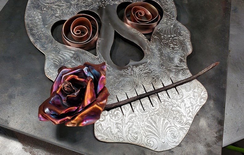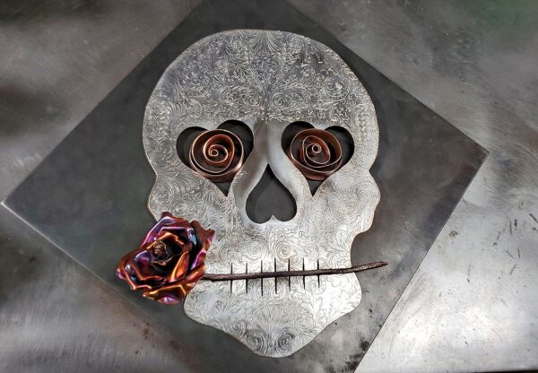 Our Sugar Skulls are created using vintage silver-plated serving ware materials including copper, silver and silver-plated copper and brass. All of our art is created 100% in the USA and will last many lifetimes. Because of the vintage nature of our materials, every piece will be a little different in color, pattern and markings due to age and base materials.